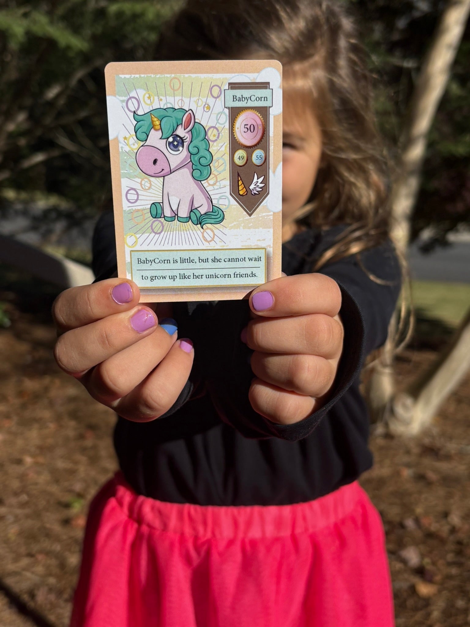 Unicorn Friends Trading Cards were created by Avery (6) who had a dream of playing unicorns with her friends. Each card encourages confidence, kindness, and creativity, allowing young girls and boys alike to have magical fun. It’s more than just a trading card—it’s a fun-filled unicorn trading game for all!